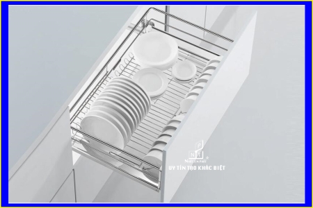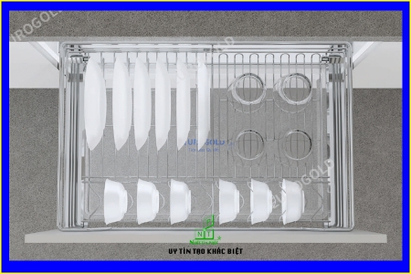 - Bộ sản phẩm gồm : Rổ inox 304, khay hứng nước nhựa, bộ ray kéo.