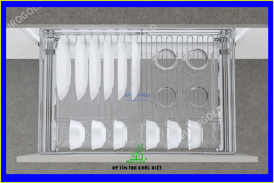 01 – KỆ CHÉN BÁT ĐĨA NÂNG HẠ INOX 304 EUROGOLD – Size : 700 mm